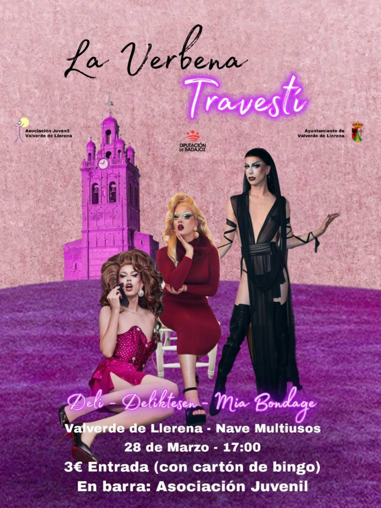 La Nave Multiusos de Valverde de Llerena acogerá desde las 17:00 h una jornada que promete ir más allá. Con actuaciones de Deli, Deliktesen y Mia Bondage, la verbena combina show drag con elementos tan populares como el bingo (incluido en la entrada de 3 euros) y una barra gestionada por la Asociación Juvenil del pueblo.