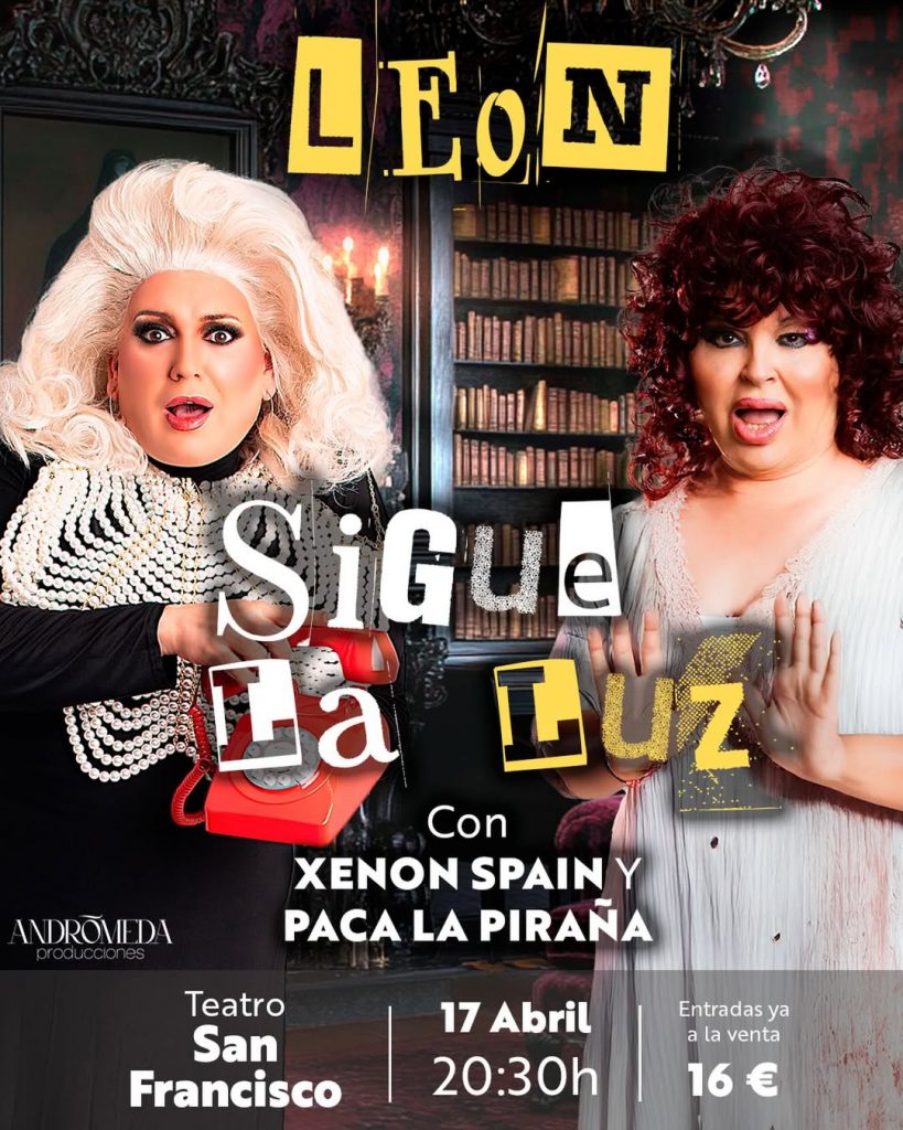 La drag y humorista Xenon Spain llega junto a Paca La Piraña con “Sigue la luz”, una obra teatral producida por Andrómeda Producciones que mezcla comedia y terror para revisitar algunas de las películas de miedo más míticas. El espectáculo continúa su gira por España y hará parada este viernes 10 de abril en el teatro Aquitània de Barcelona, antes de presentarse el próximo 17 en el teatro San Francisco de la ciudad de León. El montaje ya ha pasado por ciudades como Torremolinos o Sevilla, donde ha conseguido conectar con el público a través de una combinación de risas y sustos.